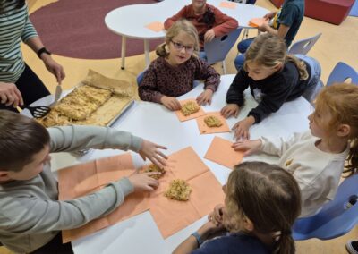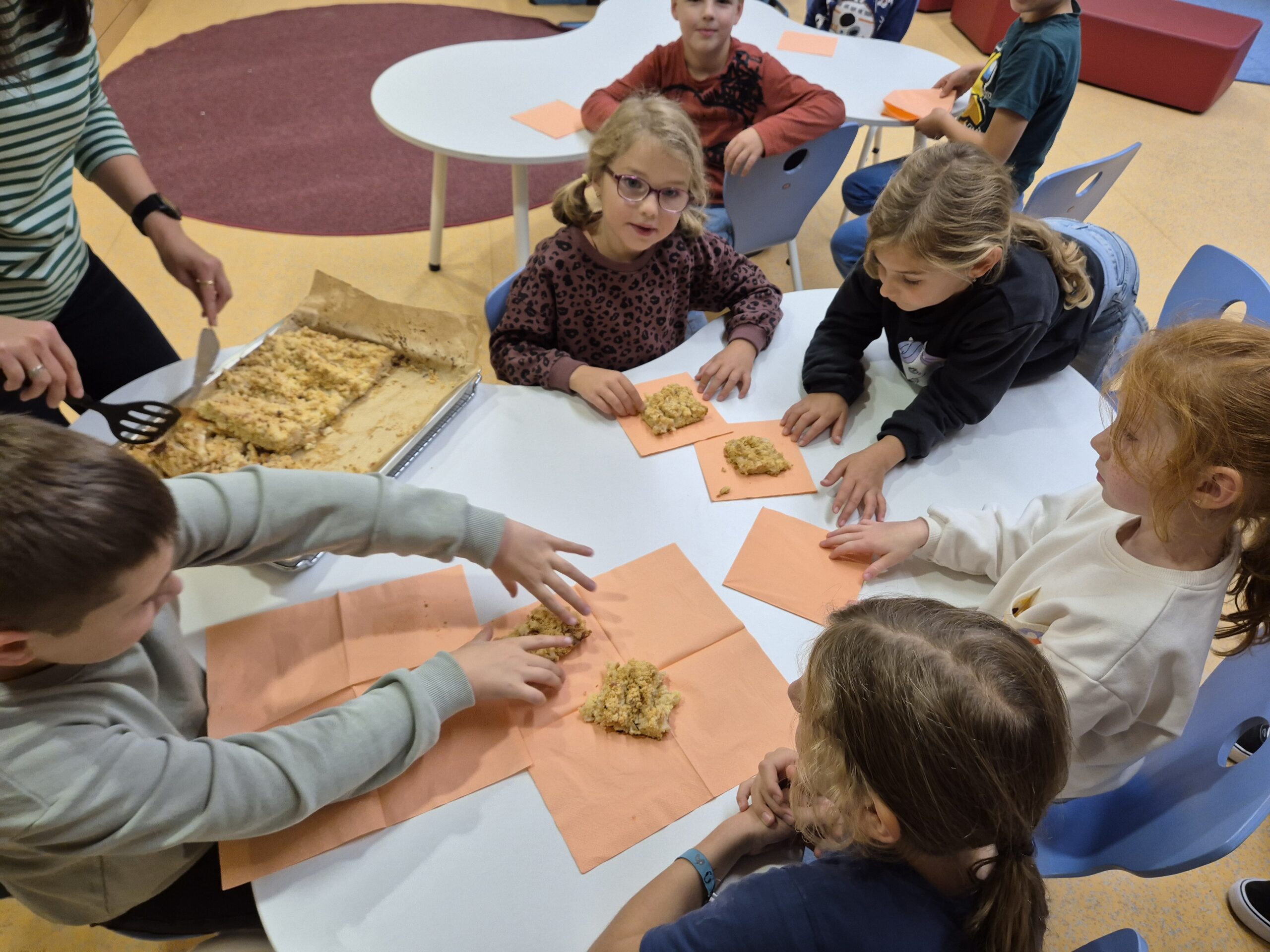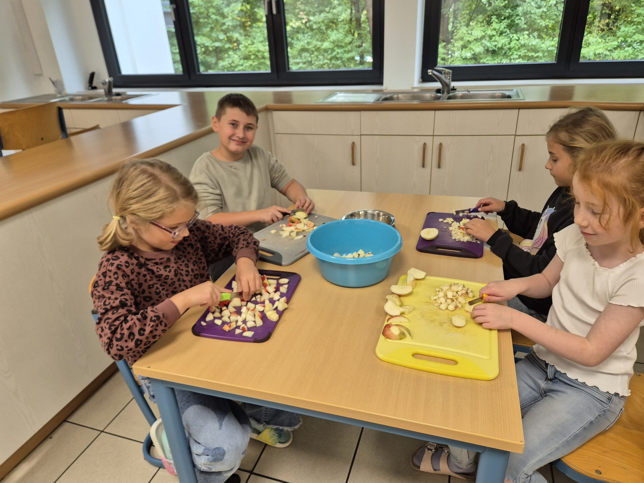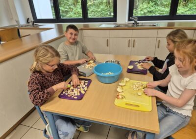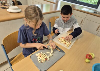 Die Kinder der Offenen Ganztagschule haben im Schulhof fleißig Äpfel geerntet. Mit viel Freude haben sie anschließend in der Küche einen leckeren Apfelkuchen gebacken. Gemeinsam wurde geschält, geschnitten, gerührt und gebacken. Zum Schluss durften alle den frisch gebackenen Kuchen probieren- ein schönes Erlebnis, das zeigte, wie viel Spaß gemeinsames Arbeiten und Genießen macht.