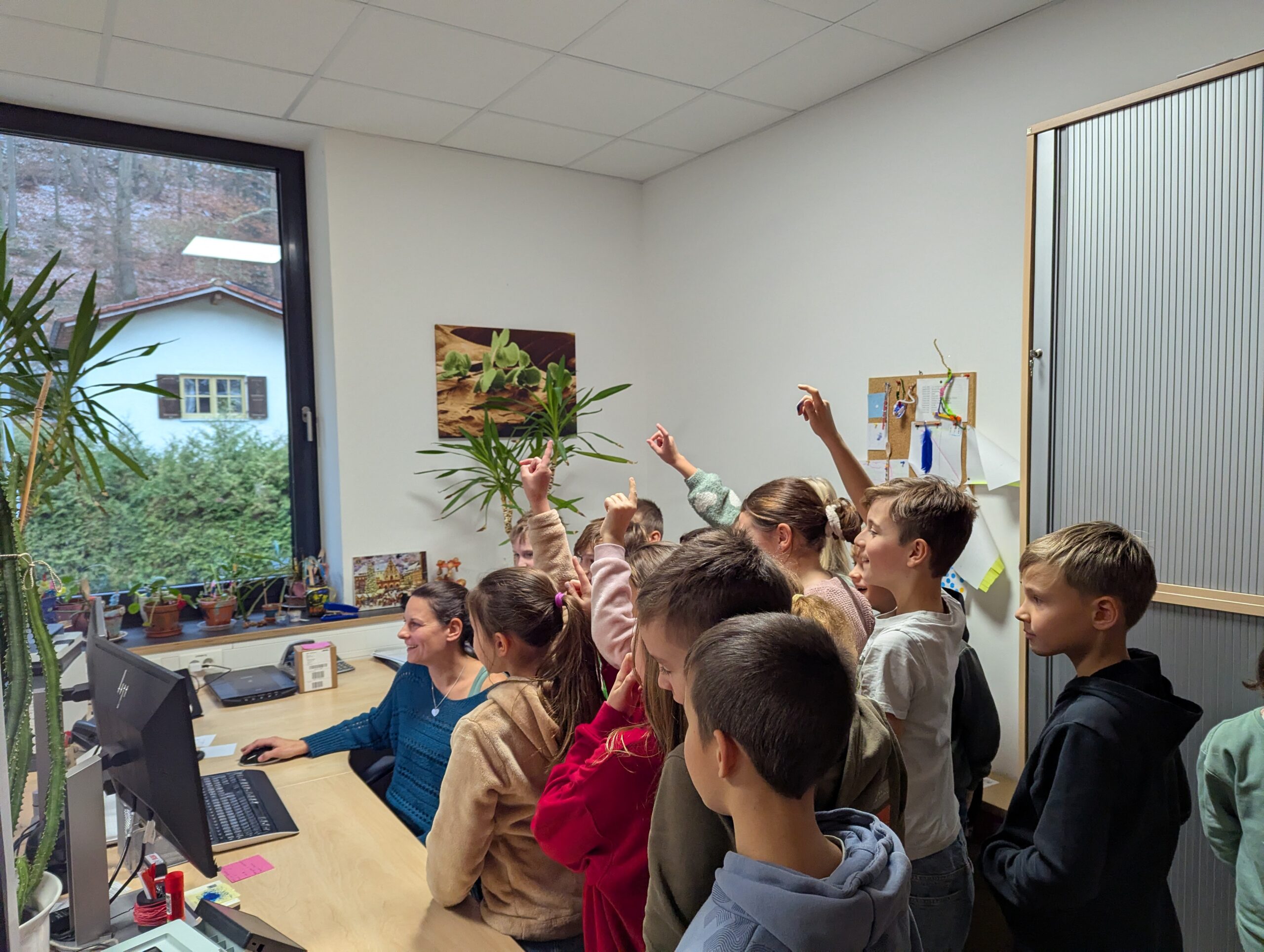 Ein besonderes Highlight war der anschließende Rundgang durch das Rathaus. Im Amtszimmer des Bürgermeisters konnten auf Fotos die Amtsvorgänger von Alwin Märkl entdeckt werden, im Einwohnermeldeamt durften die Kinder ihre eigenen Passfotos anschauen. Mit einem kleinen Erinnerungsgeschenk und vielen neuen Eindrücken machten sich die Kinder auf den Rückweg zur Schule.